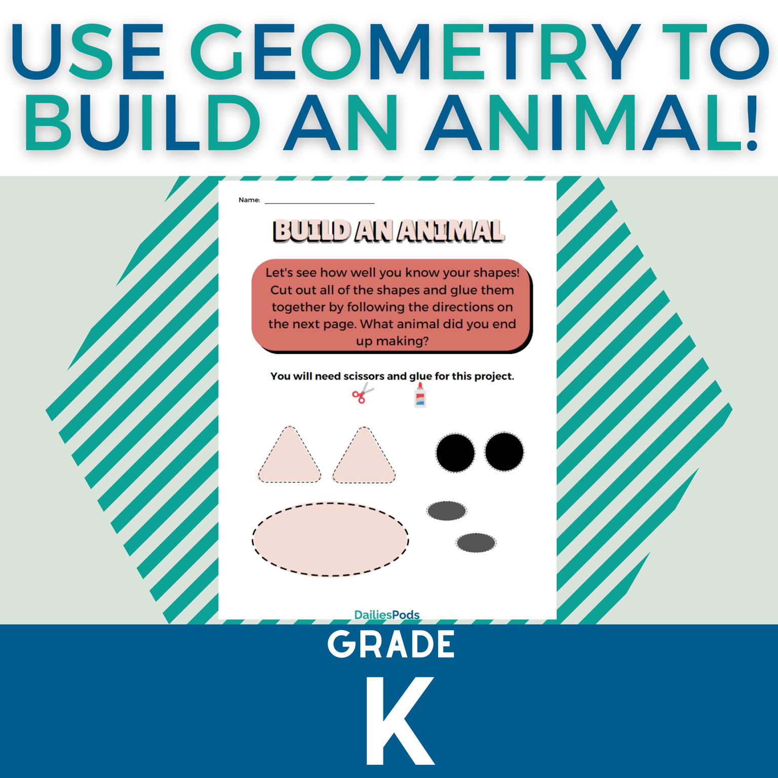 Students will follow written directions to cut and assemble different shapes to create an animal
