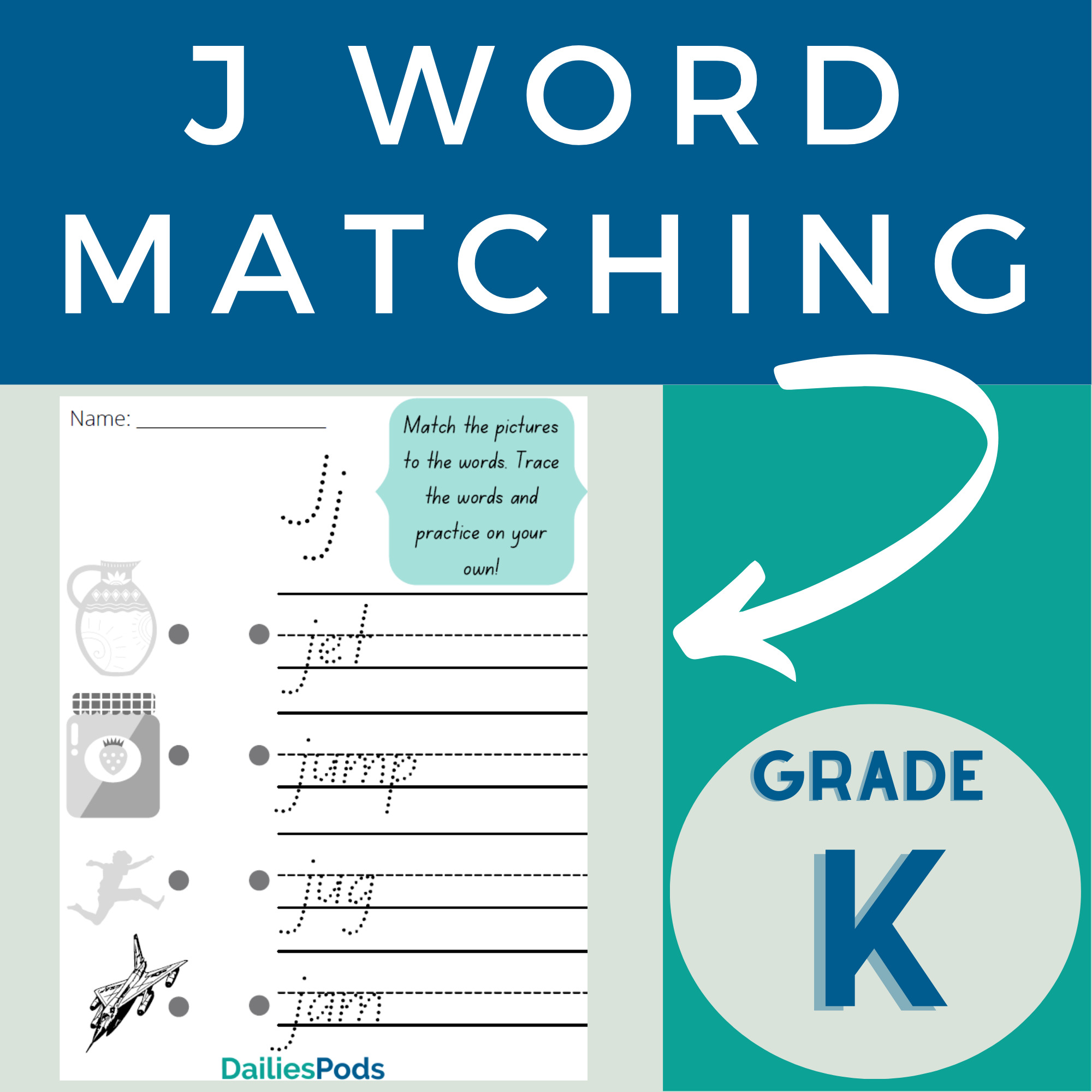 Students will practice reading and writing phonetic J words. They will match pictures to the corresponding words, trace the words, and write them!