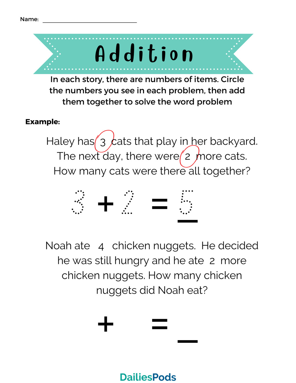 Students will read word problems and identify the addends. Students will then solve the addition problem.. (10 and under)